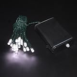 20 Waterproof Ice White LED Battery Operated Fairy Lights on Green Cable by Christmas Direct