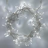 Ideal For Trees, Houses, Pergolas and Gazebos these 80 Ice White LED Fairy Lights on Clear Cable are probably the most elegant fairy lights you will ever buy. They are part of our new 'Clear Connect 24v' System and are exclusive to Lights4fun. These use 95% less electricity than standard bulbs. They are ideal for subtle decoration at parties, weddings, marquees, barbecues, and of course Christmas decorations. These low voltage Ice White LEDs are safe, reliable and fully weather protected for indoor and outdoor use. Each lighting chain set has 80 warm white LED bulbs and is 8 metres long. Total bundle is 128 metres.The cables are transparent and thus easy to hide with decorations or fabrics. You will be enjoying these lights within 2 minutes of opening the box. The new generation LED bulbs look delicate and refined, but are tough, durable and designed for you to enjoy year after year. These patented LEDs are rated to last for up to 50,000 hours and they will never get hot, so they are perfect for use at home around fabrics and furnishings. They are maintenance free with no bulbs to change - ever. Enjoy creating superb Christmas decorations with this new flexible system. The 'stay cool' technology means you can safely use our Clear Connect Lights almost anywhere. The 24 volt transformer will also protect your family and pets from the risk of electric shock. These new generation of LEDs will reduce your electricity consumption by up to 95% compared to traditional Christmas lights. Each set of 80 LED bulbs consumes only 2.9watts of power. They are maintenance free with no bulbs to change - ever. These Ice White LED fairy lights are sold as static but can be upgraded to 'sequential and multi function' by purchasing an optional controller cable. Search for B005QYGBNU.