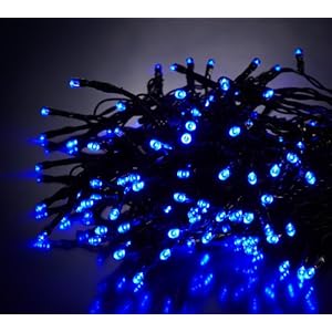 10M 100 LED FAIRY STRING TWINKLE LIGHTS WITH 8 FUNCTIONS IN BLUE FULLY WATERPROOF SEALED ON DARK HEAVY DUTY CABLE CREATE A by